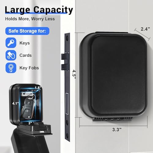 - [Large-Capacity Interior Design]: This electronic lock box can hold up to 8 house keys, 5 access cards, or 2–3 car key fobs, depending on your needs. Its large capacity and smart access features make it ideal for families, landlords, rental hosts, offices and property managers who need secure, hassle-free key sharing.