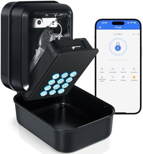 - [ Dual Unlock Options for Everyday Use ]: Unlock your key lock box through Bluetooth in the free TTLock app or by entering a passcode directly on the keypad. Whether you prefer smartphone control or a simple code, both options ensure quick and secure entry. (No built-in WiFi capability, WiFi control requires an optional gateway)