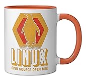 Linux Open Source Penguin Nerd Sky Geek Software Ceramic Mug, Orange/White