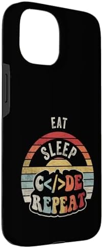 Funny Computer Programmer Shirt Retro Eat Sleep Code Repeat Case for iPhone 15