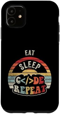 Funny Computer Programmer Shirt Retro Eat Sleep Code Repeat Case for iPhone 11