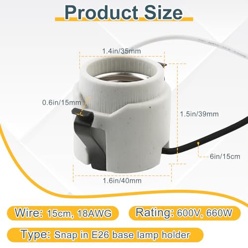 - Package Includes: You will get 2 E26 socket, each pre-wired with 6in/15cm dual-color leads. Built from robust porcelain for lasting durability and reliable performance