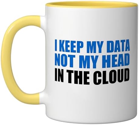 Computer Programmer Keep My Data Not My Head In Cloud Funny Ceramic Mug, Yellow/White