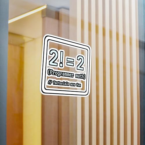 Math Sticker – 2 = 2 Programmer Math Decals for Coding Lovers, Waterproof Vinyl Sticker for Laptop or Water Bottle, Ideal Programmer Gift | Math Sticker | Factorial Decals | Math GiftExplore the world of math, factorial logic, and coding with powerful equation syntax. Perfect for every developer, geek, or nerd into computing, integers, python, javascript, data, and algebraic expressions. Code with precision and function.Made with high quality white vinyl, these kiss-cut decals deliver great looks that are water, scratch, and UV-resistant. With a removable adhesive that doesn't leave residue, each piece features a 1/8" kiss-cut border around the sticker and a satin finish. Choose between four sizes and bring your art to life. - The stickers are produced on high-quality removable white vinyl. - These stickers are scratch, UV and water-resistant. - The stickers have a satin finish. - The latest printing techniques provide bright and crisp colors matching. - Removable adhesive without residue - Four sizes to choose from - Care Instructions Clean with water and rag. Can be used indoors as well as outdoors with 3 year durability. Apply to any hard smooth surface.
