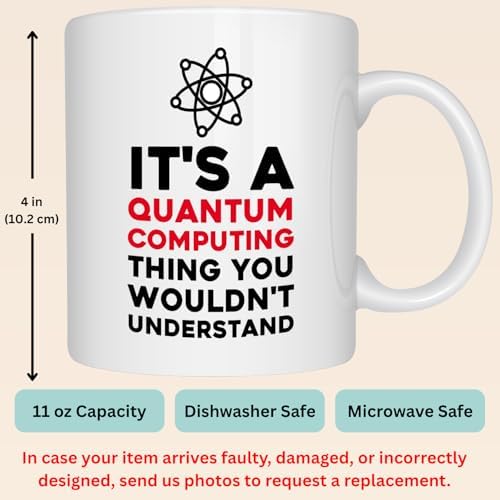 Funny Quantum Computing Physics Coffee Mug, Quantum Computer Scientist Gift for Developer, 11 oz Ceramic