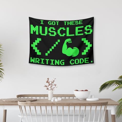IUWOKIAYN Coder I GOT Muscles Writing Code Funny Programmer Polyester Decorative Tapestry for Living Room Bedroom Dorm,Vivid Colors and Soft Fabric 30x40 Inch
