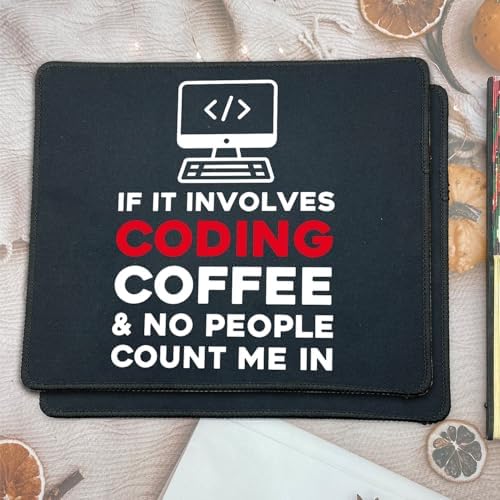 Coder Mouse Pad If It Involves Coding, Coffee & No People Count Me, Programming Gift for Software Developer, Funny Computer Nerd Mousepad, 2 Pack