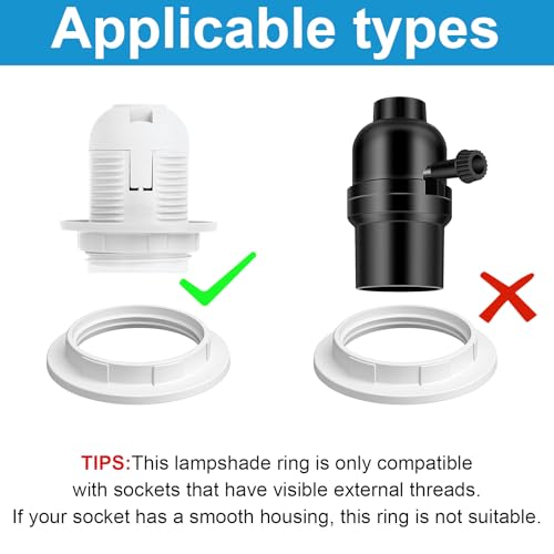 - Universal Fit: The lamp socket ring features precise dimensions with an outer diameter of 5.7 cm (2.24 in) and an inner diameter of 4.4 cm (1.73 in), making it compatible with E26/E27 sockets. Perfect for various lamp shades, including glass and fabric.
