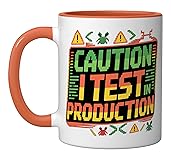 Make a statement that programmers will appreciate, warning of testing in live environments. For brave coders who live dangerously and push straight to production. 11-ounce ceramic mug is dishwasher and microwave-safe, lead and BPA free Features glossy finish with accent colors on interior, handle, and rim of two-tone designs