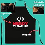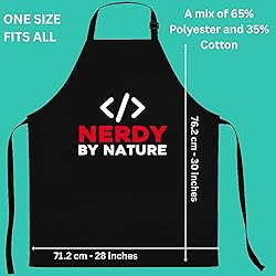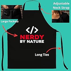 STURDY POLY-COTTON BLEND: Stay protected with a durable poly-cotton material. It's built for daily use and is machine washable. FITS EVERYONE COMFORTABLY: One size fits most. The adjustable neck and long ties ensure it fits securely and comfortably. Would you rather hangout and read a book or code an app! Well, then you would probably love this Apron. Great Christmas gift or birthday present for nerds and geeks. Apron POCKETS FOR CONVENIENCE: Store your necessities in the two big pockets, perfect for recipes, timers, or utensils.