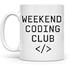 Attention tech hobbyists and programmers! The Weekend Coding Club Mug is your perfect companion for those cozy weekend sessions of coding. Sipping on your favorite brew while debugging or building gives you the comfort and motivation to create your best work. Designed with a stylish HTML bracket icon and monospace font, this mug makes coding feel even more inspiring. Join the club and fuel your passion with every sip, because the best ideas are brewed over coffee and code!