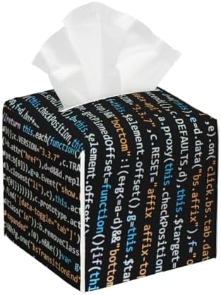 Programmer Computer Code Square Leather Tissue Box Cover - Premium Decorative Organizer with Non-Slip Base for Bathroom Vanity, Nightstand & Countertop
