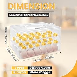 Spacious 3-Layer Design: Our egg holder for deviled eggs features a unique 3-layer structure that can accommodate up to 72 eggs, making it perfect for family gatherings or everyday use. This ample storage ensures all your egg needs are met without compromising on space. Premium Quality Materials: Crafted from food-grade materials, this egg storage box is the safe and can organize your eggs. The 3-layer design not only maximizes capacity but also helps maintain a tidy arrangement, allowing you to easily differentiate between different types of eggs.Hand Wash Only! Convenient and Practical: With an easy-to-carry handle, this egg holder is ideal for outdoor events, picnics, and family dinners. The transparent design allows for quick visibility of your stored eggs, saving you time and effort when searching for what you need. User-Friendly Maintenance: Designed for easy cleaning, the smooth surfaces of the 3-layer egg storage box ensure that your eggs remain hygienic. Simply rinse with warm water to remove any stains and allow to air dry; however, it is advisable not to place it in the dishwasher or microwave. Versatile Application: This versatile egg holder is not only perfect for home use but also makes a thoughtful gift for cooking enthusiasts and homemakers. Its practicality extends to commercial environments like restaurants and farms, and it can also be used to store small food items such as fruits, nuts, or candies.