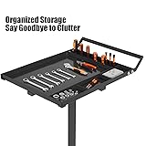 Ergonomic Height Adjustment: Based on ergonomic principles, this height adjustment function can be smoothly adjusted between 35 inches and 45 inches, allowing for easy switching between sitting and standing working modes. The flexible height adaptation can effectively alleviate physical fatigue caused by long working hours, significantly improving work efficiency. It is an ideal choice for professional work environments such as garages and workshops. The Steel Frame has Strong Load-bearing Capacity: It is equipped with a sturdy metal frame and reinforced structure design, with a load-bearing capacity of up to 220 pounds, ensuring maximum stability. The surface is treated with a waterproof and rust-proof powder coating, making it durable. It is also equipped with an adjustable tool tray, which can orderly store various tools and easily meet the storage needs of different working scenarios. Anti-slip Pad Tray: The tool tray is equipped with anti-slip rubber pads inside, which can firmly hold small components and tools, effectively preventing them from sliding, colliding or getting damaged. Whether for car repair or DIY projects, all tools and items are within easy reach, making the operation smoother. Mobile and Fixed Switchable: Equipped with four large wheels, it can be easily moved on various floors, meeting the position requirements of different working scenarios. The wheels have both stable support and locking functions. With just one click, the mobile workbench can be transformed into a fixed working surface, ensuring stability during operation. Multi-functional Scene Adaptation: Whether it's mechanics organizing tools, craft enthusiasts creating works, or garage maintenance and home renovation projects, this workbench can be perfectly adapted for all these scenarios. It can be used as a mobile workbench or as a wheeled tool cart, offering ultimate convenience for various types of work with its diverse functions.