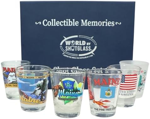 World By Shotglass Maine United States USA Souvenir Boxed Shot Glass Set (Set of 6)