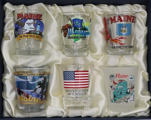 - Set includes: USA Flag Shot Glass Maine US States Series Collection Shot Glass, Maine State Elements Shot Glass, Maine State Elements Map Shot Glass, Maine State Wraparound Shot Glass, Maine All-American Collection Shot Glass.