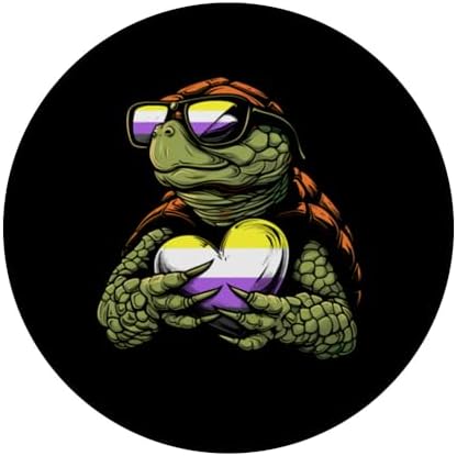 LGBT Turtle Non Binary Heart Nonbinary Flag Non Binary Pride PopSockets Adhesive PopGrip