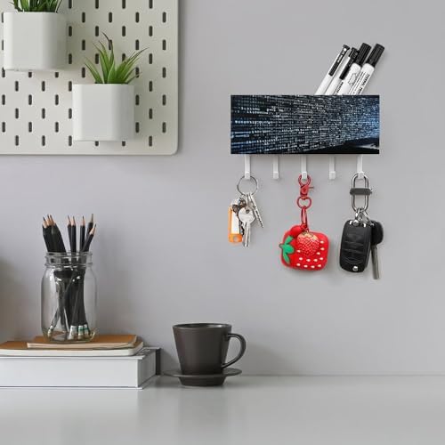 Programmer Programming Code Key Holder for Wall Decorative,2 Installation Ways Keys Hanger Keys Holder Wall Mount Hanging Key Hooks with Mail Organizer for Wallet House Accessories