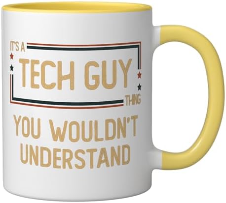 Tech Guy | Programmer | IT Computer Ceramic Mug, Yellow/White