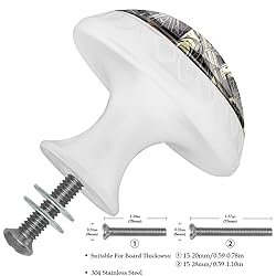- Elegant and Simple Knobs for Home Decorations. Ideal for DIY projects, home renovations, or as a thoughtful gift, these high quality knobs offer a unique way to personalize your home with a touch of artistry and charm. ---- Features ✔ Durable knob, simple design, easy operation, comfortable push and pull. ✔ Comes with two lengths of stainless steel screws, which perfectly match the threads of the knob and can be installed with a simple screwdriver tool. ✔ With a chic printed pattern design, it is not just a knob, but also a work of art to embellish your home. ✔ Easy Clean: Wipe the knobs with a clean damp cloth; Avoid the use of abrasive cleaners and strong detergents. ----Product Overview ✔ You Will Receive: Round Knobs (4 Pieces) ✔ Accessories: 4 Long Screws, 4 Short Screws (Stainless Steel) ✔ Main Material: ABS, Glass ✔ Dimensions: Knob 1.37 x 1.10 x 0.66 in/35 x 28 x 17 mm; Long Screw 0.8 x 3.5 cm/0.31 x 1.37 in; Short Screw 0.8 x 2.8 cm/0.31 x 1.1 in