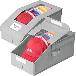 - Hat Organizer for Baseball Caps, 2 Pack Stackable Hat Storage Boxes with Clear Window, Holds up to 28 Caps, Foldable Hat Organizer for Closet & Shelf