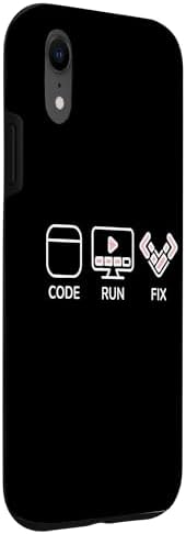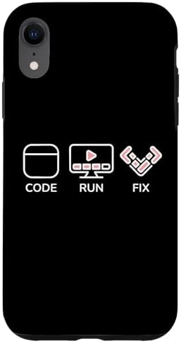 Showcase your coding journey with this sleek 'Code Run Fix' t-shirt. This minimalist design beautifully illustrates the essential software development loop: writing code, running applications, and fixing bugs. With clean white outlines and soft pink details on a black background, it's a perfect blend of style and tech passion. Ideal for developers, programmers, and tech enthusiasts who appreciate a clever and understated nod to their craft.