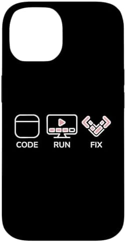 Showcase your coding journey with this sleek 'Code Run Fix' t-shirt. This minimalist design beautifully illustrates the essential software development loop: writing code, running applications, and fixing bugs. With clean white outlines and soft pink details on a black background, it's a perfect blend of style and tech passion. Ideal for developers, programmers, and tech enthusiasts who appreciate a clever and understated nod to their craft.