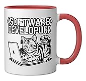 Software Developurr Cat Coding Feline - Ceramic Mug, Red/White