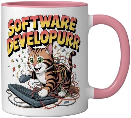 Software Developurr Cat Coding Feline - Ceramic Mug, Pink/White