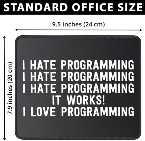 Code in comfort and style with this programmer-themed mouse pad, the ideal desk accessory for the software developer, web designer, or IT professional. Enjoy syntax-smooth gliding and pixel-perfect accuracy from the micro-textured cloth surface, optimized for all mouse sensors from laser to optical. This mousepad stays put (no 404 errors here) thanks to a heavy-duty, non-slip rubber base that grips your desk firmly. Built to last through countless deployments and coffee-fueled all-nighters, it features robust anti-fray stitched edges and a waterproof, easy-to-clean surface, making it the perfect tech gift for any computer science pro or coding enthusiast.