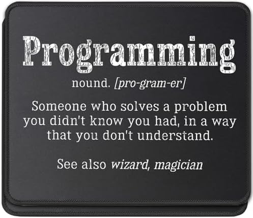 Code in comfort and style with this programmer-themed mouse pad, the ideal desk accessory for the software developer, web designer, or IT professional. Enjoy syntax-smooth gliding and pixel-perfect accuracy from the micro-textured cloth surface, optimized for all mouse sensors from laser to optical. This mousepad stays put (no 404 errors here) thanks to a heavy-duty, non-slip rubber base that grips your desk firmly. Built to last through countless deployments and coffee-fueled all-nighters, it features robust anti-fray stitched edges and a waterproof, easy-to-clean surface, making it the perfect tech gift for any computer science pro or coding enthusiast.