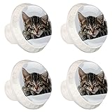 Diusye 4 Pack Cabinet Knobs, Cat Sleeping White Knobs with Screws Round Furniture Drawer Pulls Handle for Dresser Cupboard Wardrobe Closet Hardware