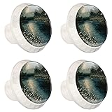 Diusye 4 Pack Cabinet Knobs, Moonlit Night Beauty White Knobs with Screws Round Furniture Drawer Pulls Handle for Dresser Cupboard Wardrobe Closet Hardware