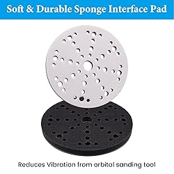 【Versatile Sander Compatibility】These 6 Inch sanding Interface pads are compatible with Festool 150 random orbital sanders, including ETS 150/3 EQ, ETS 150/5 EQ, ETS EC 150/3 EQ, ETS EC 150/5 EQ and RO 150 【Durable Material】Our sponge cushion pads are made of soft and durable sponge that provides support, making it easy to follow the contours of the polish and minimise burn-through 【Hook and Loop Backing】Buffer backing pad comes with strong hook and loop backing for easy attachment and removal.Strong adhesion catch orbital sander pad to avoid falling off during use 【Multi-hole Design】49 Holes pattern, heat dissipation and anti-clogging. This design reduces loading on the abrasive surface and maintains a cleaner working environment and extending the discs' work life 【Wide Applications】6 inch 49 holes sanding pads are ideal for a wide range of applications, sanding all surfaces, including wood, metal, drywall, auto body repair and painted surfaces