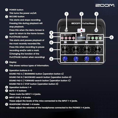 Zoom PodTrak P4next Podcast Recorder, Portable Multitrack Audio Recording w/ 4 Mic Inputs Includes 2 Handheld Mic, 2 Headphones, 2 Mic Stand, Rechargeable Batt for Interviews, Remote Guest Recording