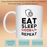 Programmer Coffee Mug Funny Eat Sleep Code Repeat, IT Specialist Gift, 11 Oz Ceramic