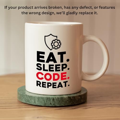 Programmer Coffee Mug Eat Sleep Code Repeat, Funny Coding Gift For Developer, 11 oz Ceramic