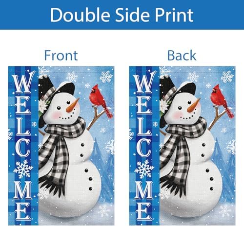 - Festive Winter Welcome Display: This garden flag features a classic snowy scene with a friendly snowman, a red bird, and a clear "Welcome" message, offering cheerful holiday curb appeal