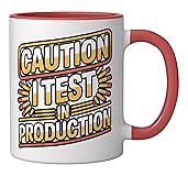 Make a statement that programmers will appreciate, warning of testing in live environments. For brave coders who live dangerously and push straight to production. 11-ounce ceramic mug is dishwasher and microwave-safe, lead and BPA free Features glossy finish with accent colors on interior, handle, and rim of two-tone designs