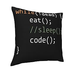 Computer Science Programmer eat Sleep Code Throw Pillow Covers,Funny Cute Phrase Gifts, 18 x 18 Inch Decorative Flannel Pillow case for Sofa Couch Bed