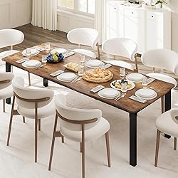 Unique Wave Irregular Edge & Mortise Tenon Stability:Boasts a distinctive wave irregular tabletop edge for artistic visual appeal, paired with traditional mortise tenon joints and high-density MDF boards, plus upgraded metal legs. The reinforced structure resists wobbling and daily wear, serving as a durable centerpiece for years of family meals Two Sizes for 6-8 Person Spacious Seating:Available in 70.8''L×35.4''W×29.5''H and 78.7''L×35.4''W×29.5''H (marked as 71/79 inch for easy reference) to comfortably seat 6-8 people. The ample tabletop provides enough space for dishes, tableware, and decorations, ideal for family dinners, friend gatherings, or small celebrations Industrial Style with Safe Rounded Corners:Sleek grey wooden finish complements sturdy metal legs to embody modern industrial charm. The tabletop features chamfer detailing and rounded corners (paired with its wave edge) for enhanced safety, preventing accidental collisions and seamlessly fitting contemporary, traditional, or mixed home decors Multi-Scene Versatile Usage:Beyond a dining table, this long wooden table doubles as a computer desk for home offices, a study writing desk for students, or a creative workspace for art projects. It adapts to dining rooms, home offices, or living rooms, maximizing space utility for diverse needs Hassle-Free Quick Assembly:Comes with clearly labeled parts, precise pre-drilled holes, comprehensive instructions, and all necessary screws/accessories. No professional tools are required, allowing you to complete setup in minutes and start using the table immediately