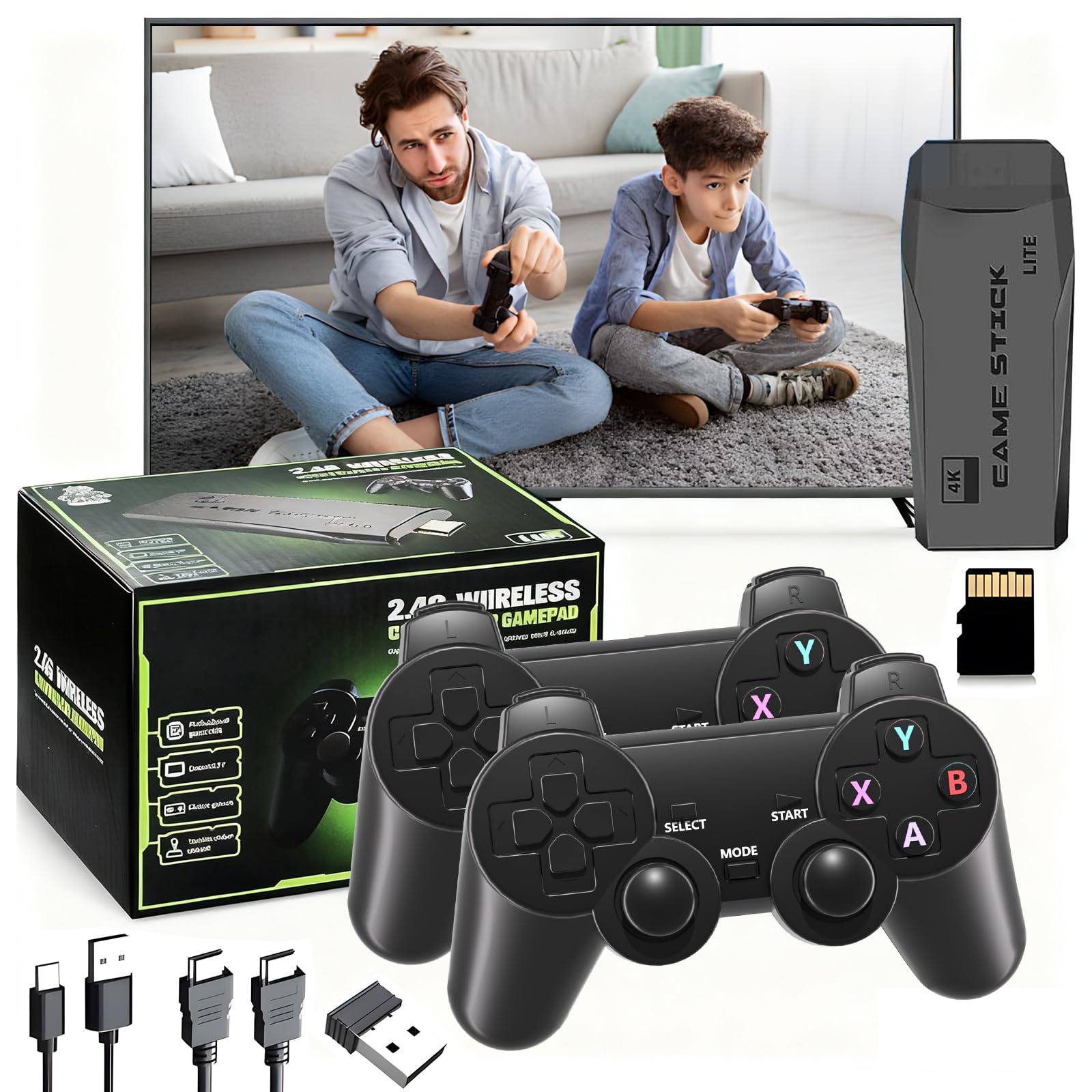 - Wireless Fun for Family and Friends: The console includes two 2.4GHz wireless controllers that offer a stable, lag-free connection for smooth gaming. Play together with friends or family on the couch without the hassle of wires, making every game session more fun and enjoyable. (Every controller needs 2 AAA batteries, and it is not in the package)
