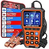 2-in-1 PRO OBD2 Scanner Diagnostic Tool, Car Code Reader with Battery Tester, Check Engine Code Reader with Reset OBDII, Real-Time Date, DTC Lookup, Scan Tool for All OBDII Protocol Cars Since 1996