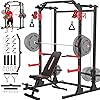 - [100+ Workouts = 1 Machine] 2026 upgraded weight cage includes all essential attachements for complete full-body workouts at home: dip bars, J hooks, safety arms, wide & narrow pull-up bars, lat pull down bar, rowing bar, barbell holders, cable crossover, cable handles, foot padel, barbell spring clamps, storage hooks and more, turning one piece of gear into a full-body training hub