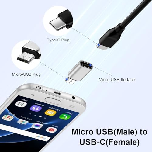 - 【USB C to Micro USB Adapter】: This USB-C female to Micro USB male converter plugs into the USB C male port, allowing connect USB C cable to Micro USB mobile devices for charging and data transfer, helping you reduce the quantity of cables you have to carry around.
