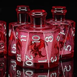 Potion-Inspired Liquid Core Design Each die features a flowing liquid-style core inspired by fantasy potions and alchemy aesthetics, creating a magical, immersive look for DND and tabletop RPG players. Handcrafted Resin Dice with Sharp, Readable Numbers Made from high-quality resin, these polyhedral dice are carefully crafted with sharp edges and deep number engraving for clear readability and consistent rolling. Complete 7-Piece Polyhedral Dice Set Includes D4, D6, D8, D10, D12, D20, and percentile die—perfect for Dungeons & Dragons, Pathfinder, and other tabletop RPG systems. Perfect for Immersive Roleplaying & Display Designed for players who love fantasy aesthetics, potion-style dice add atmosphere to game nights and look stunning as part of any dice collection. Great Gift for DND & RPG Enthusiasts An ideal gift choice for dungeon masters, RPG players, and tabletop gaming fans who appreciate unique designs and potion-inspired fantasy elements.