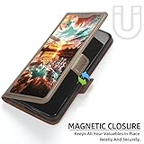 It is supported by advanced RFID blocking technology to block signals and protect your personal information effectively Can stand the phone up to watch something hands-free High quality PU leather, very light, it have card slots, can be put into cards and money Magnetic flap to keep it closed and protected, secure magnetic closure Absorption of light and sunlight will produce a fluorescent effect in a dark environment.