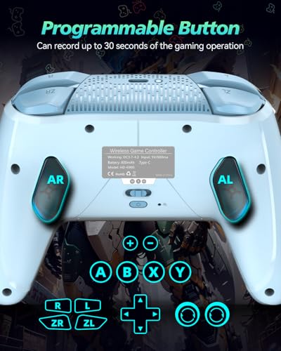 GMBACK Wireless Switch 2 Pro Controller, Macro Controller for Nintendo Switch 2/Switch 1/Lite/OLED with Loop Macro, Home Wake Up, HD Rumble, Motion Control, Turbo, 800mAh, Light Blue