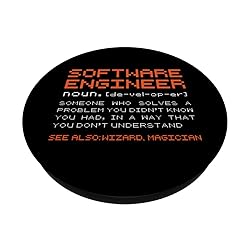 Software-Engineer Developer Definition Programming. You are a Software-Engineer or Programmer and Coder, this funny Design is for computer programming and developer who geek about Syntax, Coding and source-code. Programmer Software-Engineer and Coder. This funny coder programmer definition is designed for testing, debugging, fixing errors and bugs, a nerd about programming languages or applications, and the right code execution of programming. Adhesive backing attaches the PopGrip to your case or device. Will not stick to silicone, leather, waterproof, or highly textured cases. Works best with smooth, hard, plastic cases. Not compatible with wireless charging Printed top is swappable with other compatible PopGrip models. Just press flat, turn 90 degrees until you hear a click and remove to swap.