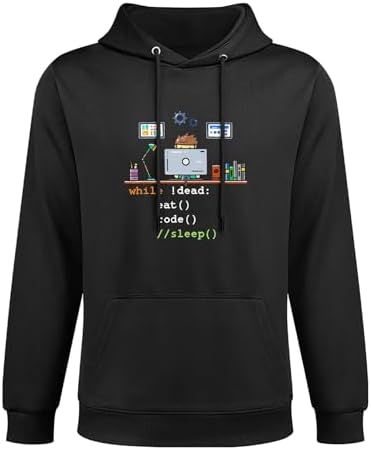 Eat Code Sleep Funny Coder Coding Programmer Hooded Sweatshirt, Soft Fleece Pullover Hoodie for Everyday Wear